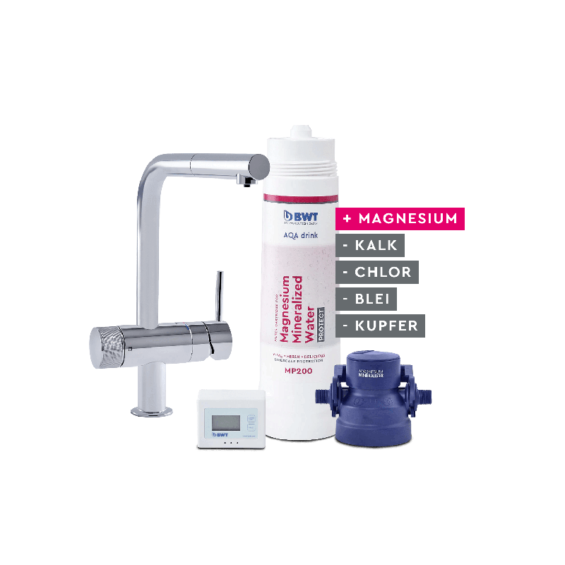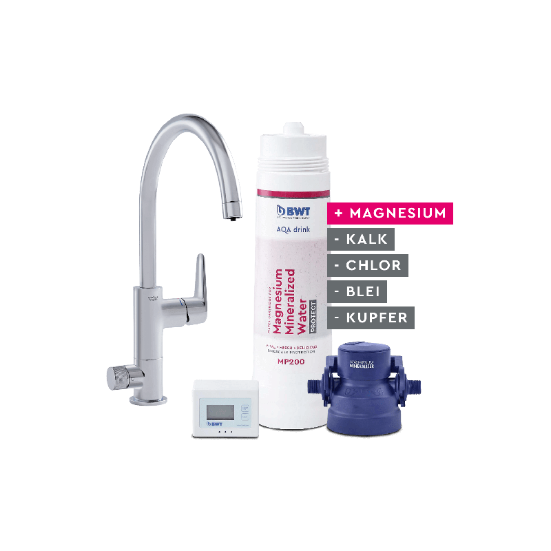 GROHE sink faucet with BWT filtration system. The faucet has two levers, one for filtered and one for unfiltered water. Filtered drinking water can be enriched with magnesium mineralization or simply purified from chlorine, bacteria and microplastics. This allows you to filter...
