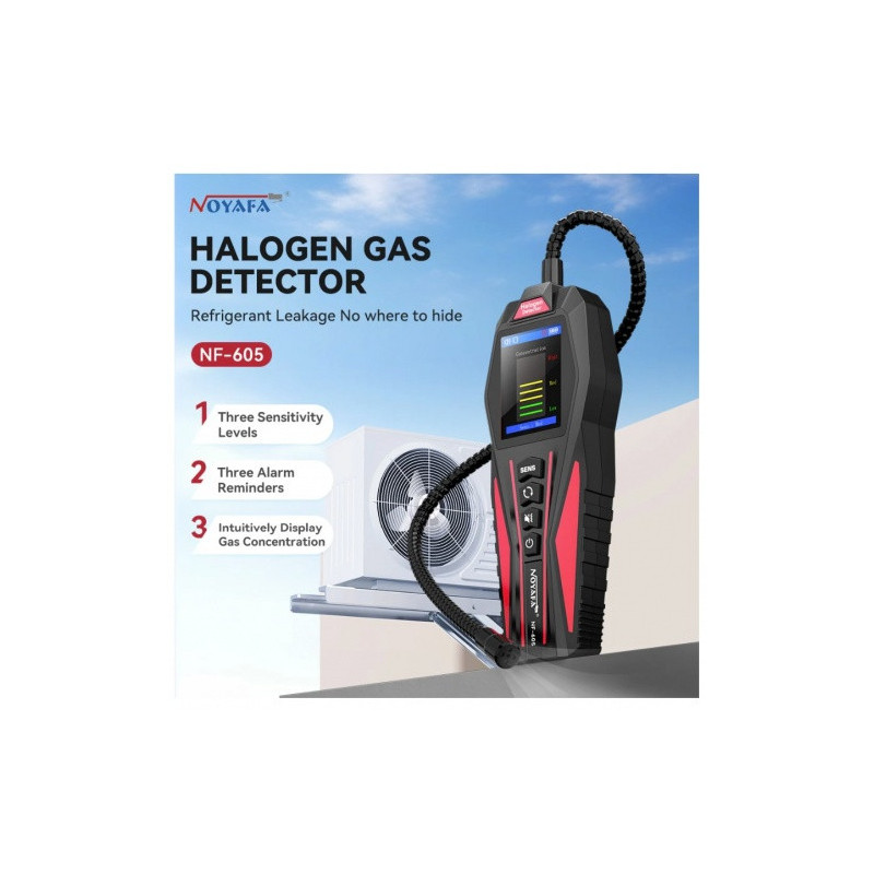 Halogen gas detector - accurate detection of refrigerant leaks with 360° probe and alarm
