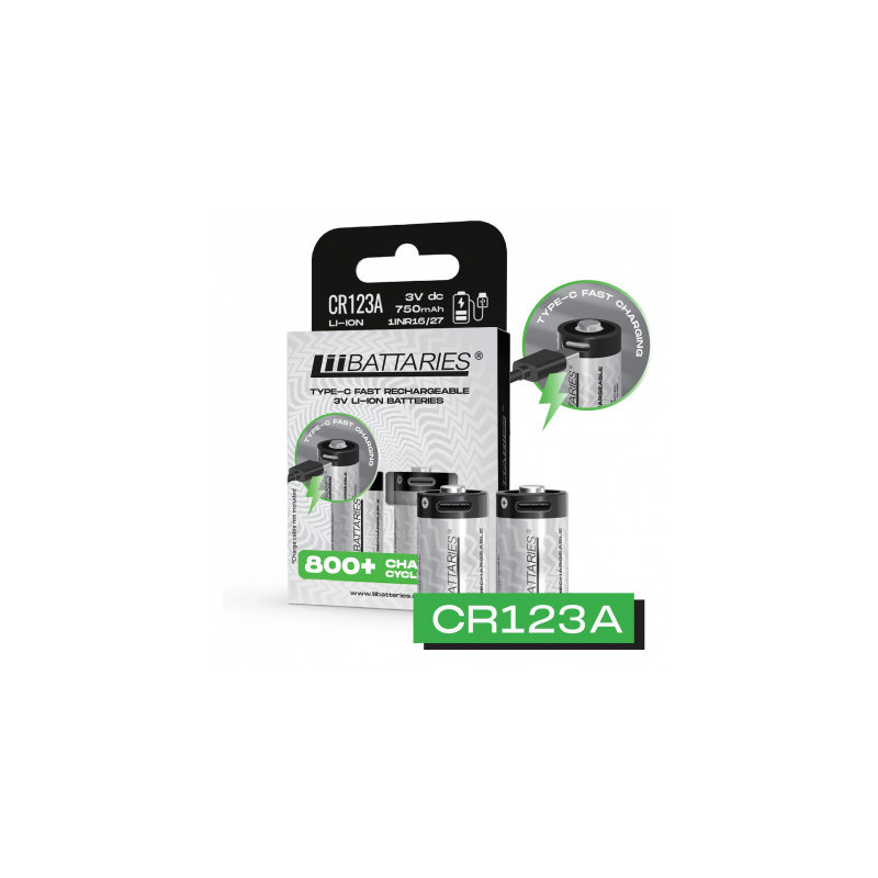 Liibattaries USB-C Rechargeable batteries Lithium-Ion CR123A (16340) 750mAh (2pcs)
