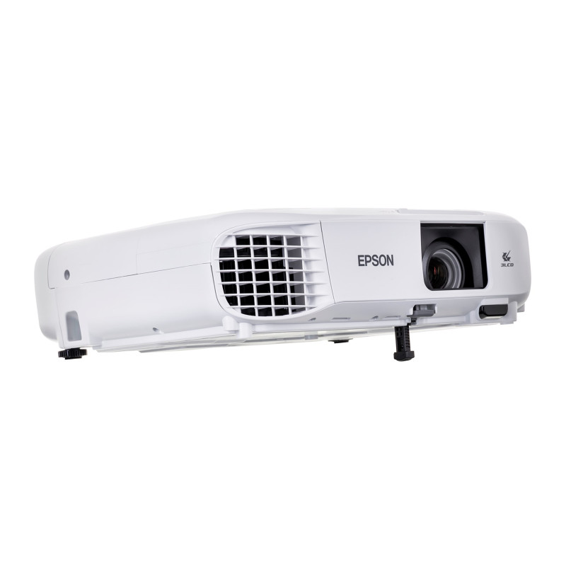 The Epson EB-W49 is a desktop projector with 3800 ANSI lumens brightness and WXGA 1280x800 resolution. It has several preset modes, manual zoom, and supports ceiling mounting.