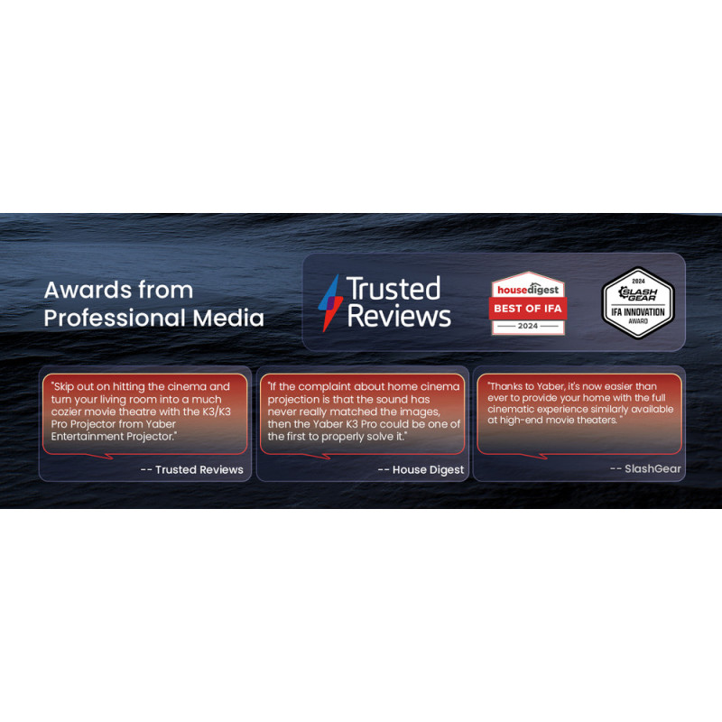 The Yaber K3 Pro LCD FullHD 1080p multimedia projector with JBL speakers and a dedicated subwoofer is a guarantee of a cinematic experience in the comfort of your home. Thanks to the brightness of 1600 ANSI lumens and native FullHD resolution, each image is clear and full of details. Built-in, dual JBL speakers with a power of 15 W each and a separate subwoofer with Dolby Audio deliver powerful, deep sound. Advanced automatic image setting functions - auto focus, auto keystone, intelligent obstacle avoidance and screen alignment - eliminate tedious configurations. CoolSwift technology takes care of stable cooling, and the built-in Smart OS with access to over 7,000 applications opens the door to unlimited entertainment.