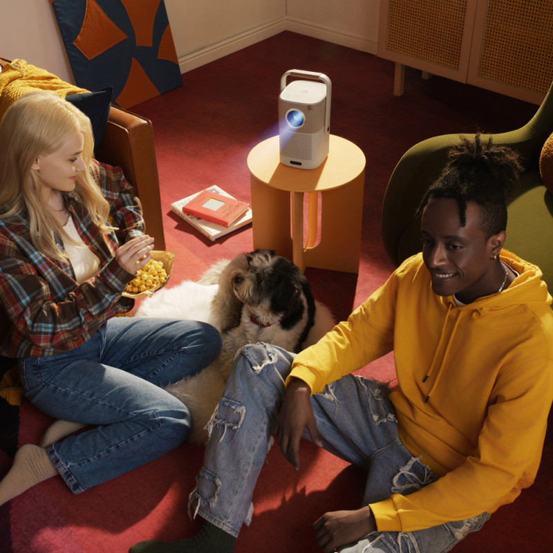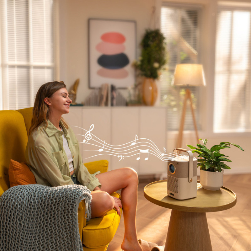 The well-thought-out design of the projector has been enriched with a handle that rotates around the housing in a full 360° range, giving you maximum flexibility in setting it up. What's more, it is not just a handle - it also acts as a stable stand, thanks to which you can easily set the projector at the perfect angle. Regardless of whether you are projecting an image on the wall, ceiling or want to change the position while traveling - this function allows you to adjust the setting to any situation without the need for additional accessories.