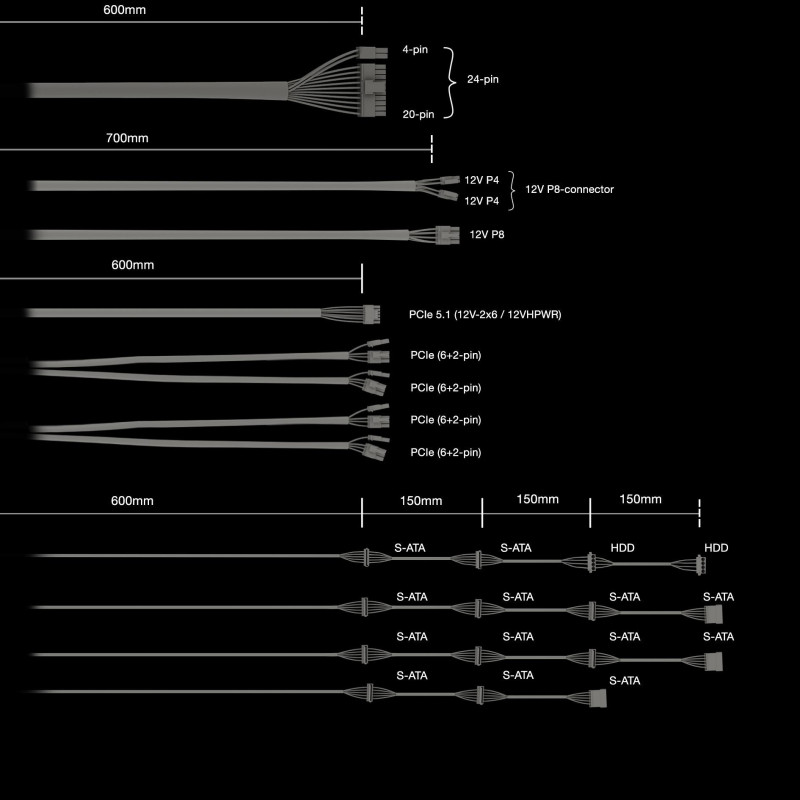 | PCI Express power cable length | 600 mm |