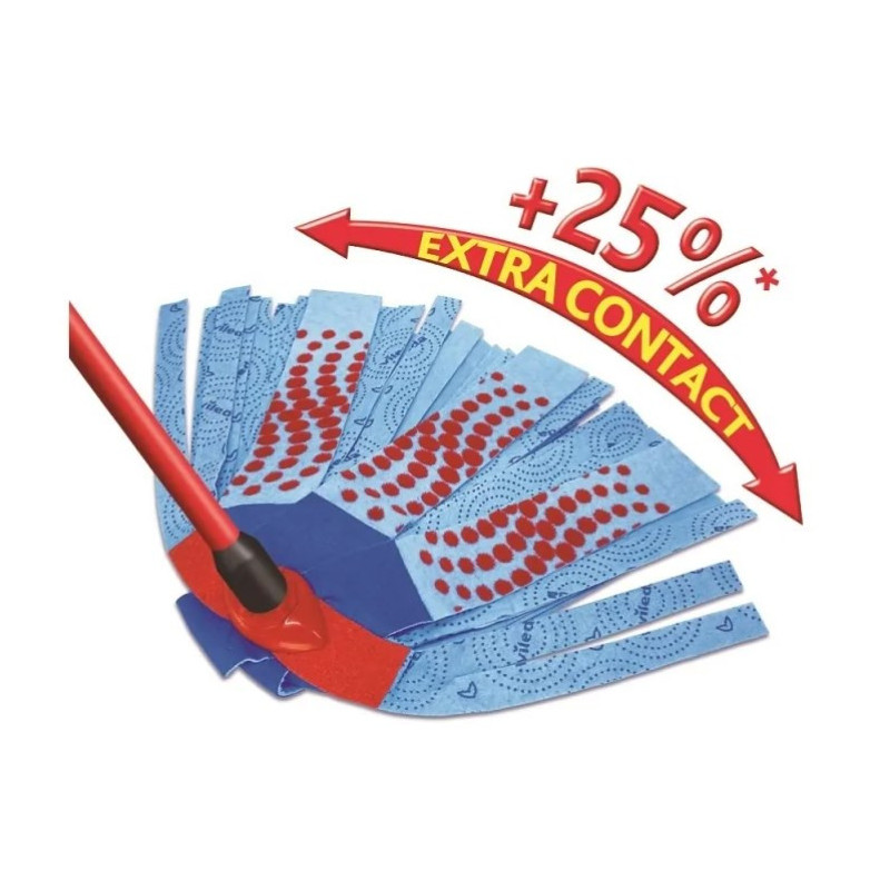 The Vileda 3Action Velour XL blue mop head with a three-in-one cleaning system ensures effective dirt removal. It is compatible with Vileda mop handles and is machine washable, making it easy to maintain.