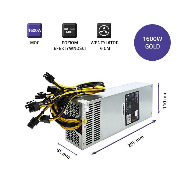 Qoltec 50177 PCI-E power supply Smart 1600W | 80 Plus Gold - Data mining