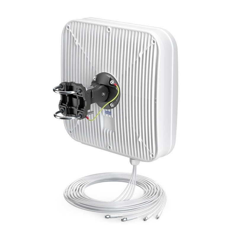 QuPanel 5G/LTE directional MIMO 4x4 high gain antenna is predicted for 5G and 4G LTE mainly, but is compatible with 3G and 2G as well. The antenna improves the signal in rural/suburban and locations where the mobile signal is weak. That antenna is predicted to be installed on the buildings (on the pole or on the wall). Due to very wide working frequency range, the antenna is universal client for 5G bands n77, n78 and LTE bands like LTE700 / 800 / 1800 / 1900 / 2100 / 2300 / 2600 / 3400 / 3800. It's compatible with Teltonika and other MIMO 4x4 5G / LTE / 3G / 2G modems and routers.