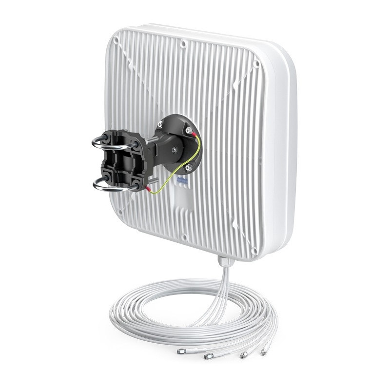 QuPanel LTE directional MIMO 4x4 high gain antenna is predicted for 4G LTE high categories from cat 5 up to cat 19. The antenna improves the signal in rural/suburban and locations where the mobile signal is weak. That antenna is predicted to be installed on the buildings (on the pole or on the wall). Due to very wide working frequency range, the antenna is universal client for LTE bands like LTE700/800/1800/1900/2100/2300/2600. It's compatible with all MIMO 4x4 LTE modems and routers working in categories: cat 5, cat 6, cat 7, cat 9, cat 10, cat 11, cat 12, cat 13, cat 15, cat 16, cat 18, cat 19.