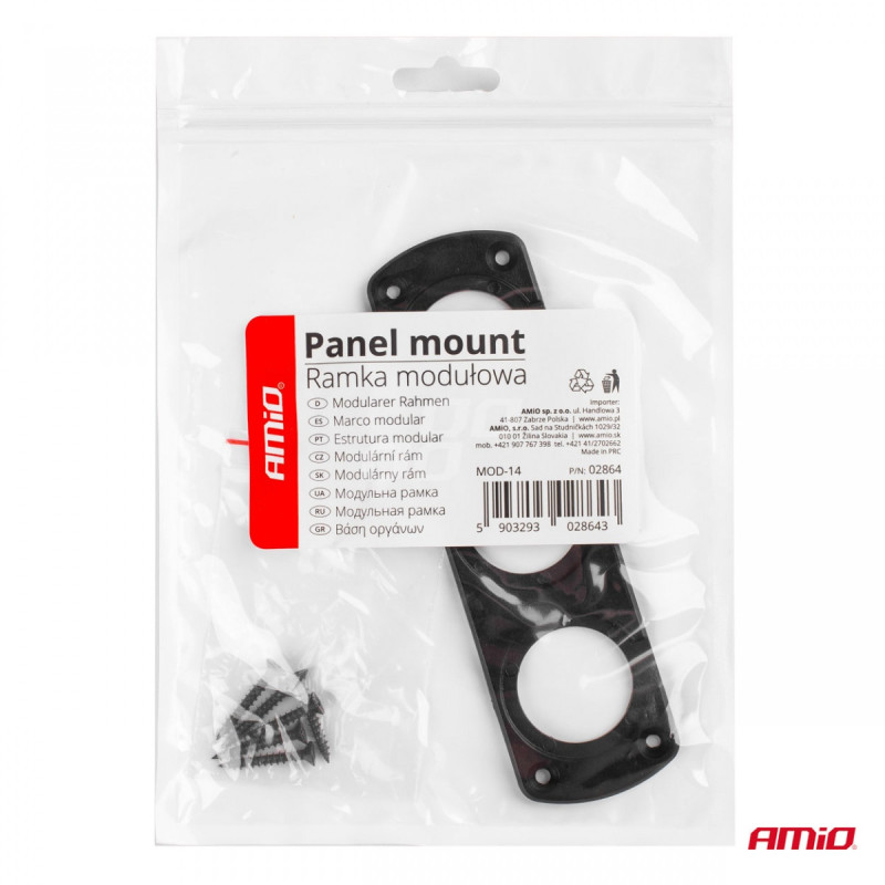 A flat panel cover with curved sides for mounting a round voltmeter, USB charger, or cigarette lighter socket. The frame allows for the installation of three components simultaneously.