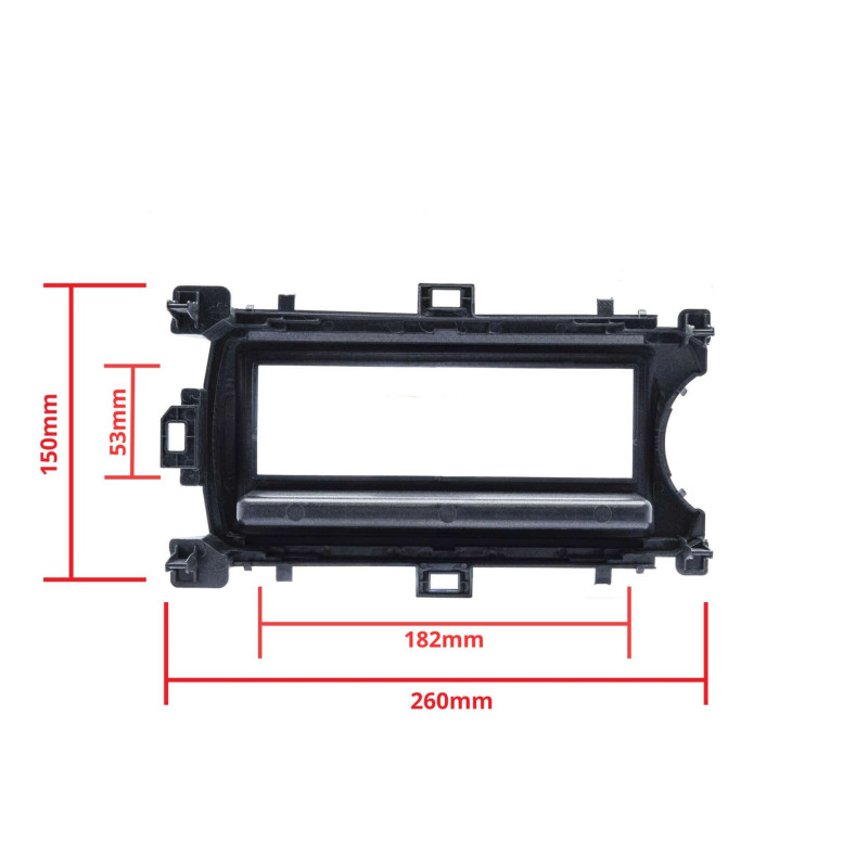 Ramka pozwala w prosty sposób umieścić w miejscu oryginalnego radia, odtwarzacz niefabryczny, ramka posiada uchwyty, zatrzaski, miejsca na śruby pasujące w oryginalne miejsca. Zastosowanie: