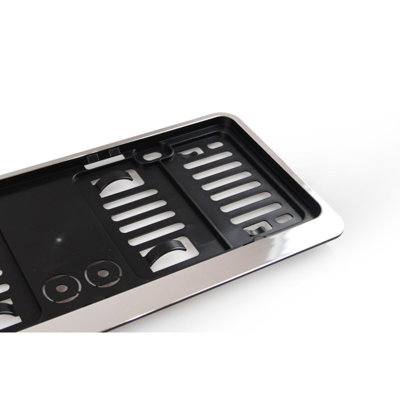 The frame allows for stable mounting of the license plate. It has mounting holes, eliminating the need to drill holes in the bodywork. The frame makes the plate more visible and protects it from being lost.