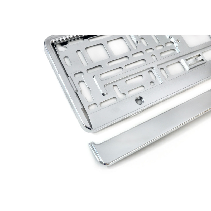 The frame does not require drilling additional holes in the license plate thanks to the use of an additional snap-in strip.