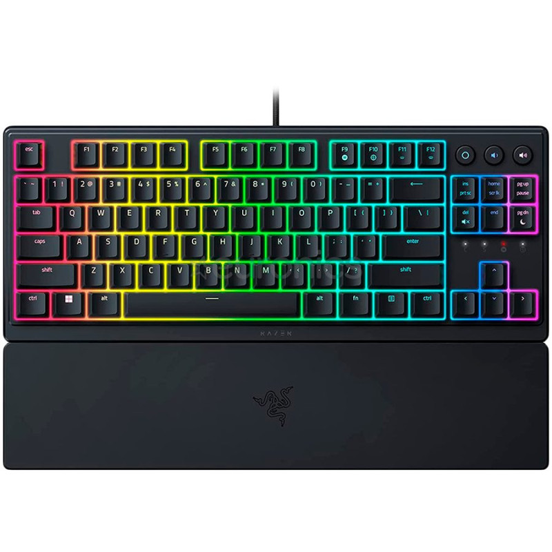 | Keyboard Features | Wrist Rest Spill Resistant Design Multimedia Function 1000Hz Ultrapolling RGB Lighting Tenkeyless Braided Fiber Cable UV-coated ABS Keycaps Razer Synapse enabled Gaming mode |