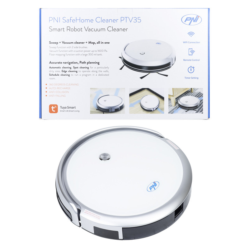 Intelligent robot vacuum cleaner PNI SafeHome Cleaner PTV35 WiFi, 30W, control and programming from the dedicated Tuya Smart application, integration in scenarios and smart automation with other Tuya compatible products