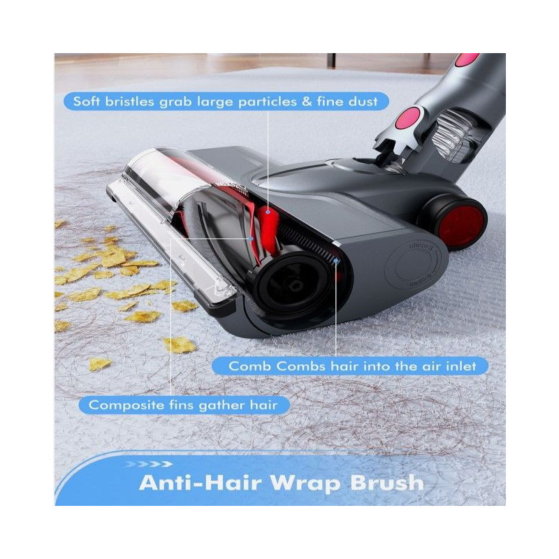 - Anti-Tangle V-Shaped Brush: Minimizes hair wrap around the roller, reducing maintenance and ensuring optimal pickup, especially for pet owners.