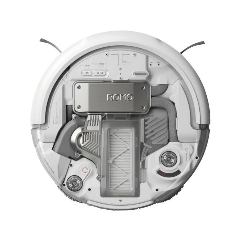 | Summary | DJI ROMO A (Water Tank Version). Dust container type: Bagless, Product colour: White, Shape: Round. Base station functions: Charging, Mop washing, Dust capacity (total): 0.26 L, Clean water tank capacity (base): 4 L. Battery capacity: 5000 mAh, Runtime: 180 min, Charging time: 2.5 h. Battery capacity: 72 Wh. Height: 98 mm, Width: 351 mm, Depth: 351 mm |