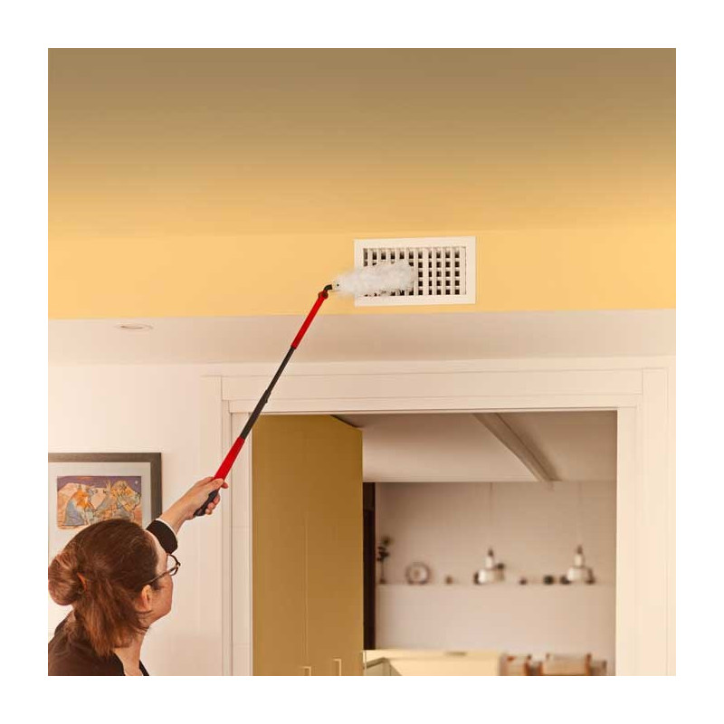 The Vileda broom has a long telescopic handle for comfortable use and easy cleaning. The set includes one FlexCatch refill and is conveniently stored with a hanging hole.