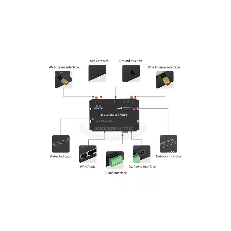 | LED indicators | 1x power, 1x working status, 1x data transfer, 1x WAN, 4x LAN, 4x signal strength, 4x network status |