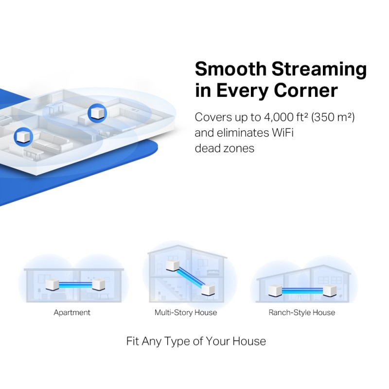Whole Home Coverage- Blanket up to 4,000 ft² (350 m²) with high-speed WiFi, eliminating WiFi dead zones at your home.