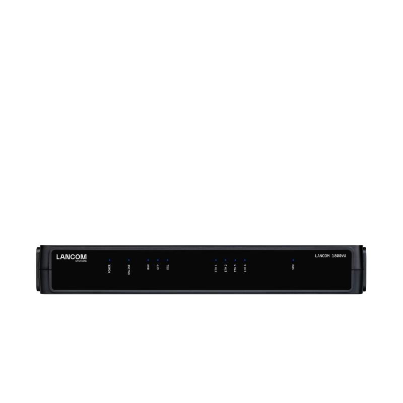 The LANCOM SD-WAN Gateway 1800VA has an integrated VDSL modem and supports data transfer rates of up to 300 Mbps. It features five IPSec-VPN channels for secure communication and offers flexible installation options.