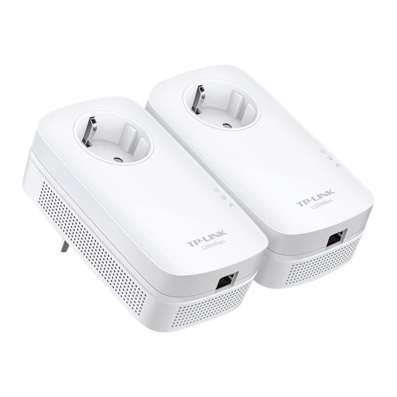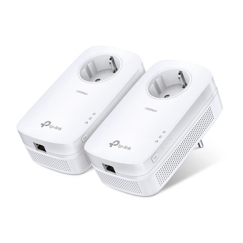 TP-LINK TL-PA8010P KIT provides data transfer speeds of up to 1300 Mbps using the Homeplug AV2 standard. It features a Gigabit LAN port, an integrated power outlet, and energy-saving features.