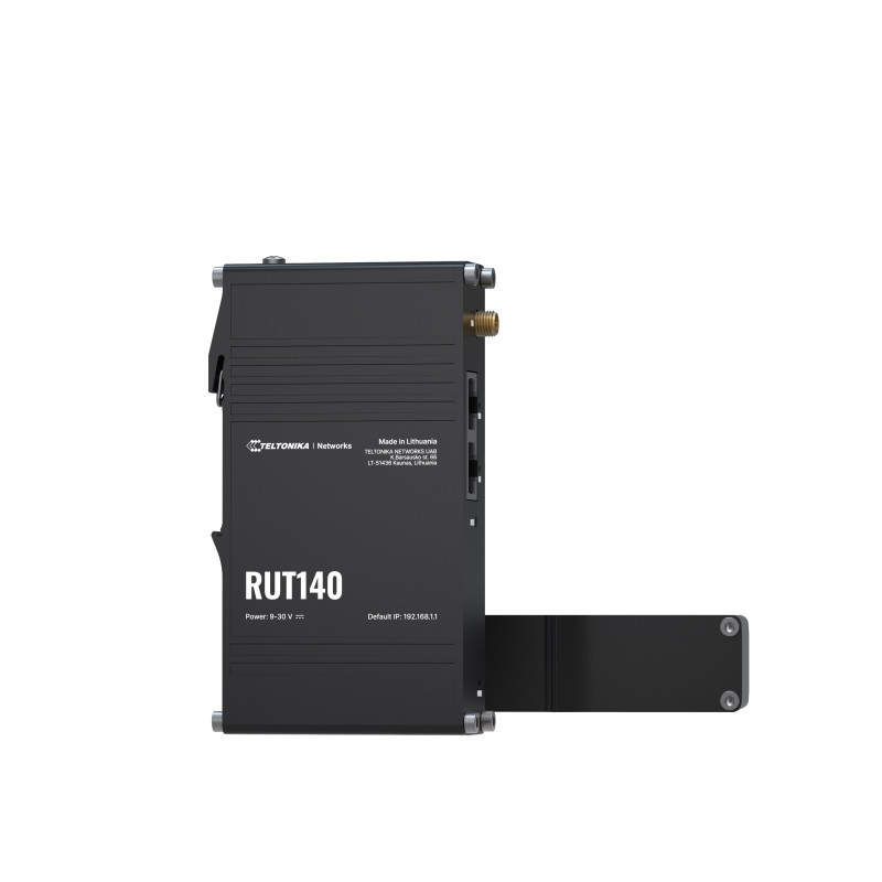 The RUT140 is a compact industrial Ethernet router, enhancing security through network isolation for end devices. Equipped with two Ethernet ports, DIN rail bracket, and an industrial 3-pin connector, it ensures seamless connectivity and easy installation. The router comes with RutOS, Wi-Fi 4, and supports industrial protocols such as Modbus, DLMS, DNP3, and OPC UA, and is compatible with RMS for efficient remote and on-site management.