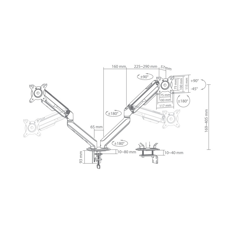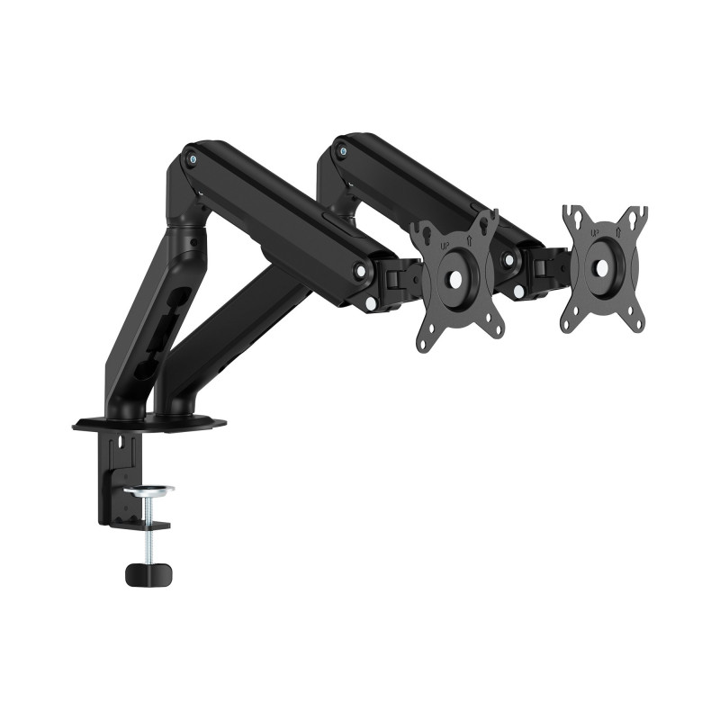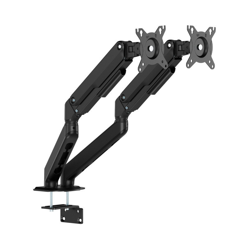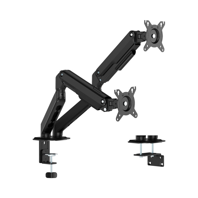 Designed to adapt to different desk setups, the mount offers both grommet and clamp-on installation options, delivering a secure fit across a wide range of desktop thicknesses.