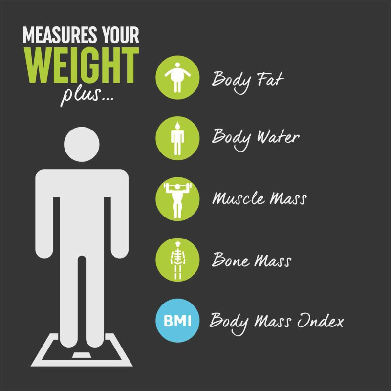 Monitor your health and fitness with multiple body composition measurements; body fat, body water, muscle mass, bone mass and BMI.