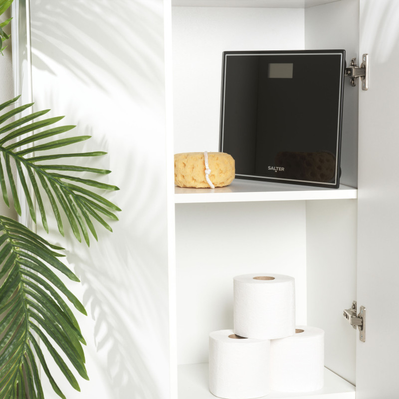 Designed with a stylish, toughened safety glass platform, this Salter compact glass bathroom scale makes weight measurement a breeze.