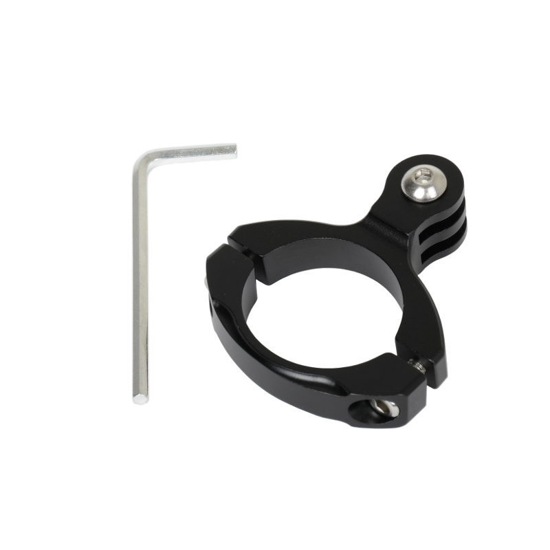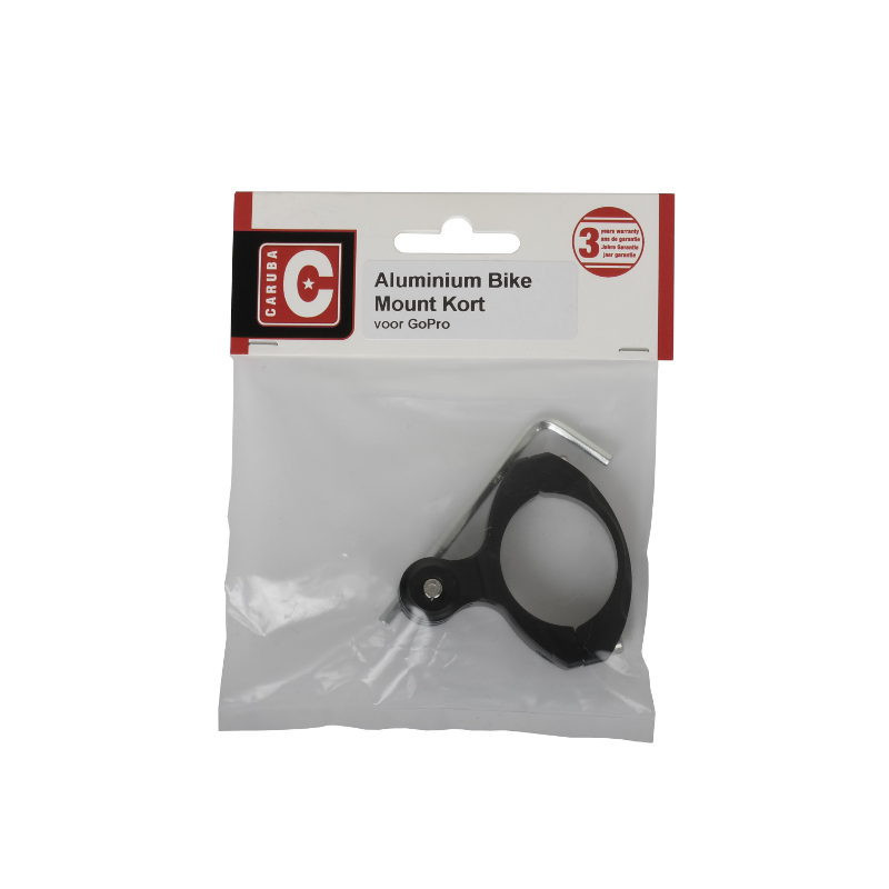 The Caruba Aluminum Bike Mount Short securely attaches GoPro cameras to bicycle or motorcycle handlebars with a maximum tube diameter of 28mm. The mount is made of durable aluminum and comes with a hex key for installation.