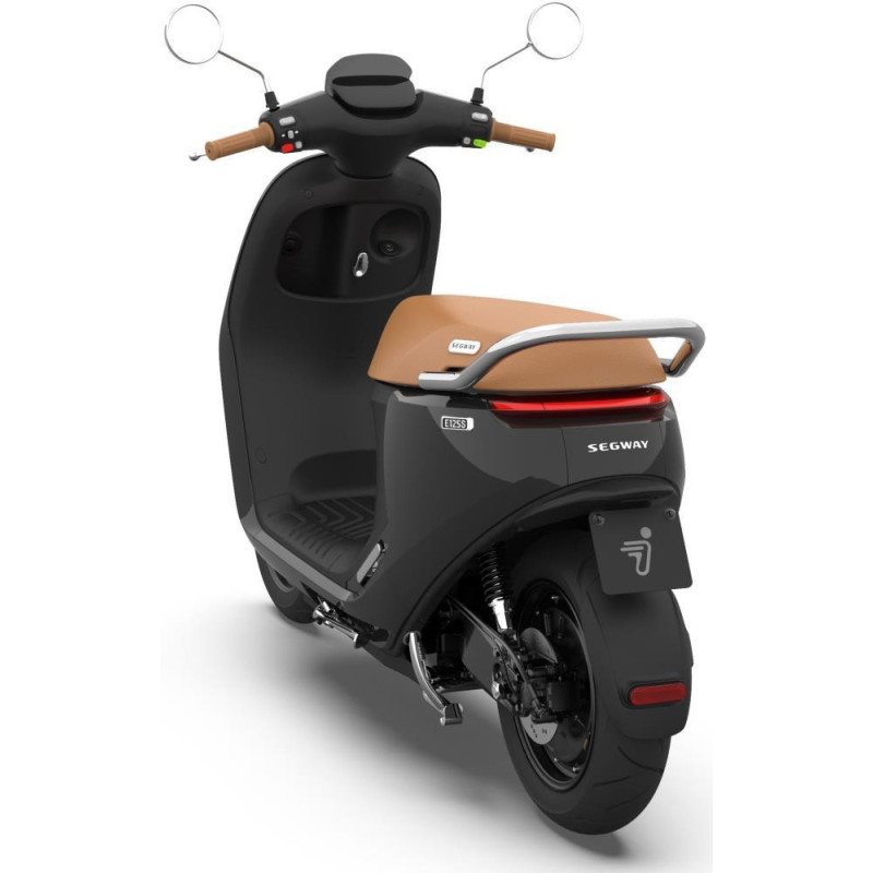 The new, fashionable and sustainable way to ride: discover the premium Segway eScooter E125S! Not only the E125S has a total premium look with the luxury chrome metal and cognac finishes but is also smart thanks to many features integrated into the mobile App. In addition, thanks to its two batteries (included) located under the foot panel, benefit from an extra-long achievable range of up to 140 km* (WMTC range: up to 102 km (25km/h version) ; up to 81 km (45 km/h version)): you can ride where you want in peace. So put on your sunglasses and ride with style! The Segway E125S has everything to provide you with a pleasant and high-quality riding experience. With two batteries included, the eScooter has been designed so that the battery compartment is located at the bottom of the vehicle. This not only allows you to have enough room to store your things under the seat (27 L) but also to have the centre of gravity as low as possible. As a result, you will benefit from more stability and safety when driving. This is what we call the golden riding triangle: the perfect balance to make your posture as pleasant, comfortable and safe as possible. As dynamic as its performance, the LED headlight is designed with a unique matrix structure and a full front horizontal display to produce a wider beam of light and illuminate your path ahead. The headlight delivers a premium experience while following the brand's mission of always building smarter and more energy-efficient products. As your safety is our number one concern, we integrated the ABS braking system in our premium Segway eScooter to avoid brake locking and skidding. In addition, the eScooter is equipped with front and rear hydraulic disc brake. Combined with our advanced EBS (Electronic Braking System), this creates a controlled and safe braking environment while recovering energy at the same time. Thanks to several new functions such as the Airlock function, parking and seat sensors, the RideyGo! Intelligent system will save you precious time. RideyGo! is a combination of smart features which reduces the locking/ riding/ unlocking process from 8 steps to 5 steps. The Airlock system within RideyGo! turns on/off your eScooter automatically without using any physical key. Instead, the Bluetooth connection on your smartphone* allows you to activate this function when you come closer or move away within 2-10 meters from the eScooter. Thanks to the AHRS (Attitude and Heading Reference System), your eScooter is anti-theft protected. With an integrated 4G-enabled SIM and GPS, you can track the eScooter's location at any time. The Segway E125S's smart security system detects any irregular movement and sends notifications directly to your smartphone within seconds to give you peace of mind. If your eScooter is locked with a battery inside, any unusual actions such as pushing, moving, or accessing the vehicle will trigger the alarm system. The Segway eScooter has the Smart Battery Management System (BMS) 6.0 which ensures a longer battery life and offers multiple smart functions. Thanks to the BMS 6.0, your eScooter requires less maintenance. Not only will it monitor the amount of power, control the charging speed and adjust your real-time information when the battery is draining, but it will also prevent and protect the battery from over/undercharging.
