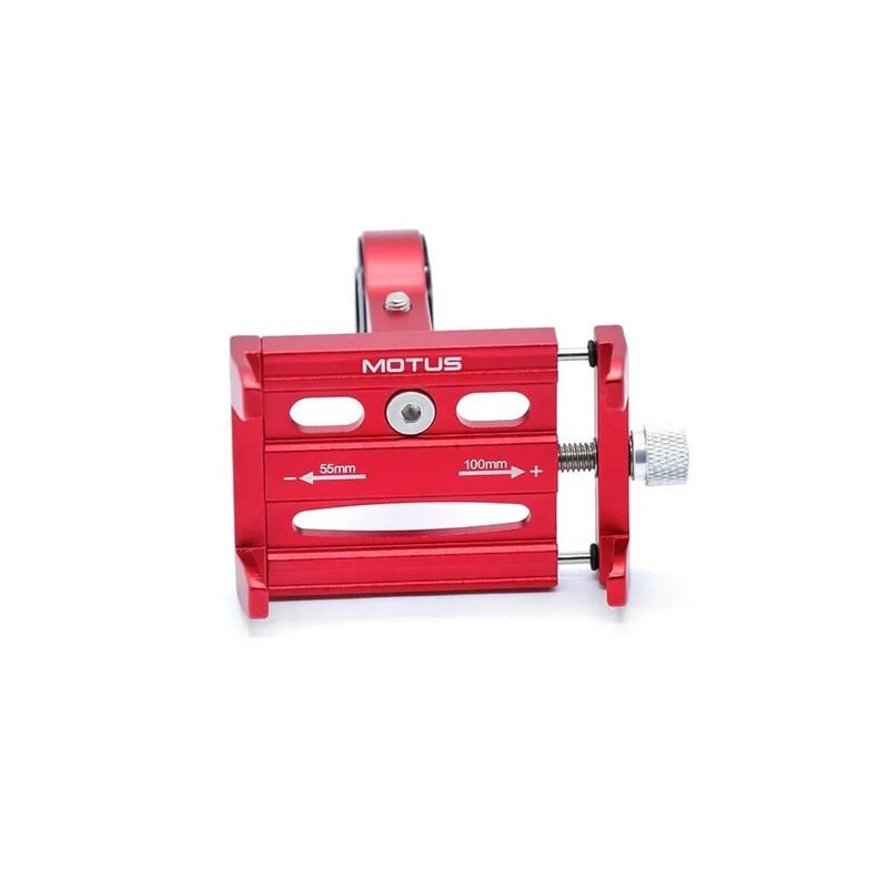 Universal phone holder for mounting on bicycle or scooter handlebars, suitable for devices with a width of 5.5 cm to 10 cm. Made of aluminum, it includes the necessary mounting accessories and fits handlebar diameters from 2.22 cm to 3.18 cm.