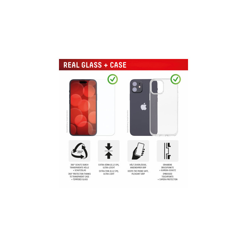 DISPLEX Real Glass+ Case iPhone 16, 2D-Glass