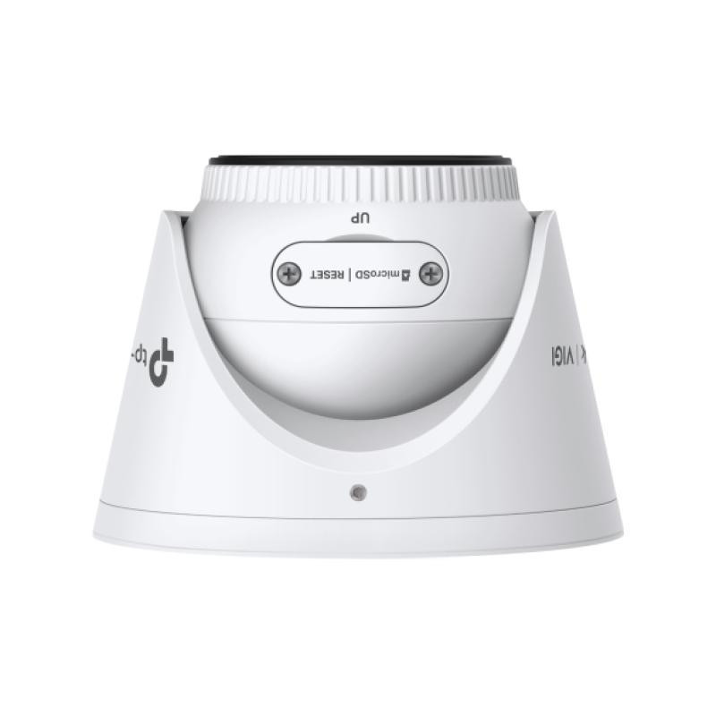 The TP-Link VIGI C445 IP camera features a 4MP sensor with 2688 x 1520 pixel resolution and a wide viewing angle that allows pan and tilt. It features advanced detection features, IP67 weather resistance and Ethernet connectivity, as well as a microSD card slot for data storage.