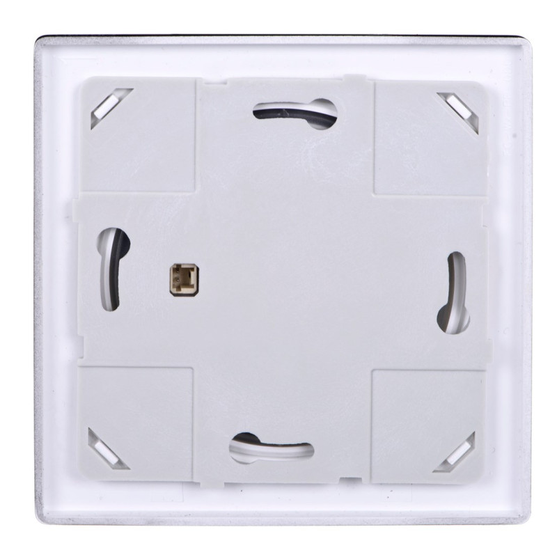 Wireless Z-Wave communication technology provides a transmission distance of up to 50 meters. The device features adjustable brightness, a temperature sensor and customizable LED lighting in a compact wall-mounted design.