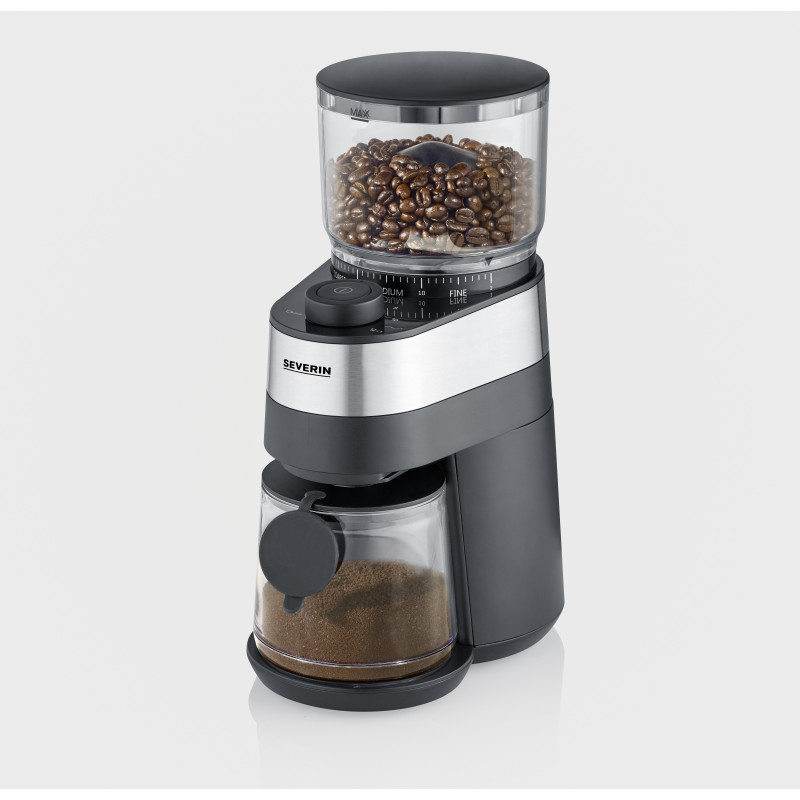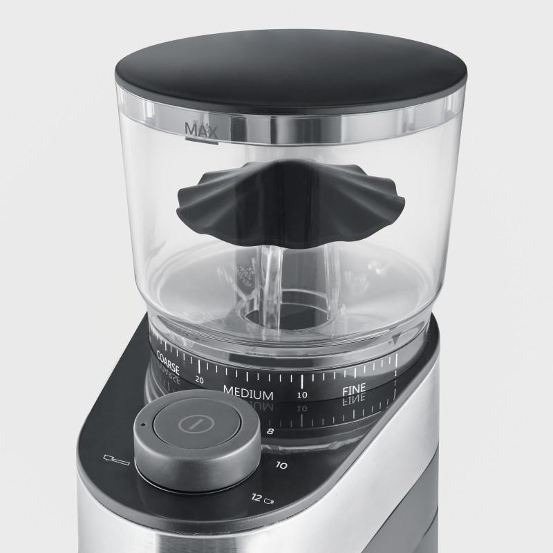Coffee grinder in a modern design with aroma-preserving stainless steel disk grinder for consistently perfect grinding results
