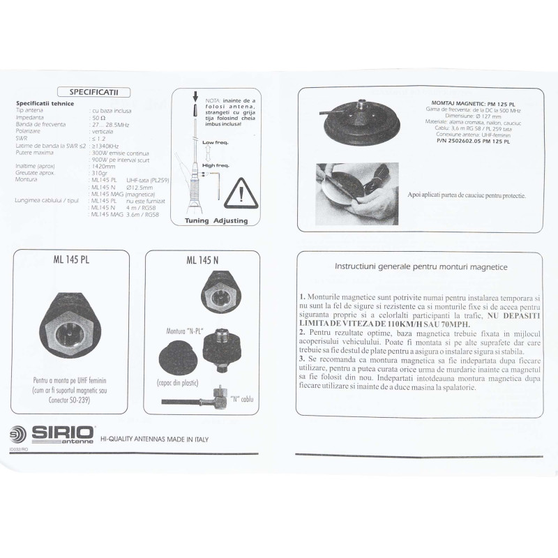Sirio CB antenna ML145 with PL thread, length 145 cm, 27 - 28.5 MHz, 900W, without cable