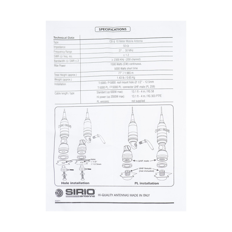 Sirio Performer 5000 PL CB antenna, 196.5cm without cable