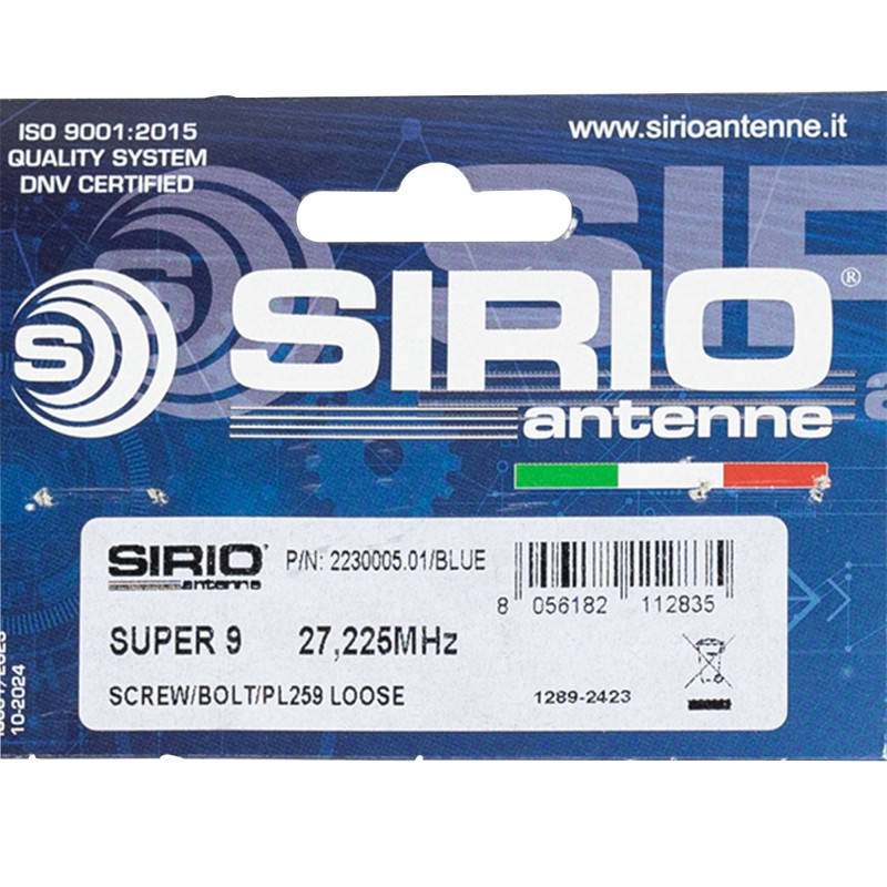 Sirio SUPER 9 CB antenna with butterfly, length 155 cm, 27 - 28.5 MHz, 250W, mount, 4m RG58 cable and PL259 plug included