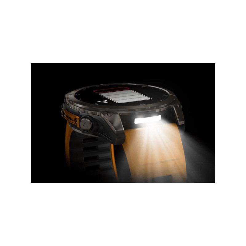The Garmin Fenix 8 has a 1.4' AMOLED touchscreen with a resolution of 454 x 454 pixels and is equipped with GPS, Wi-Fi and various activity tracking features. It has a heart rate monitor, barometer, and supports multiple sports modes, with a battery life of up to 29 days.