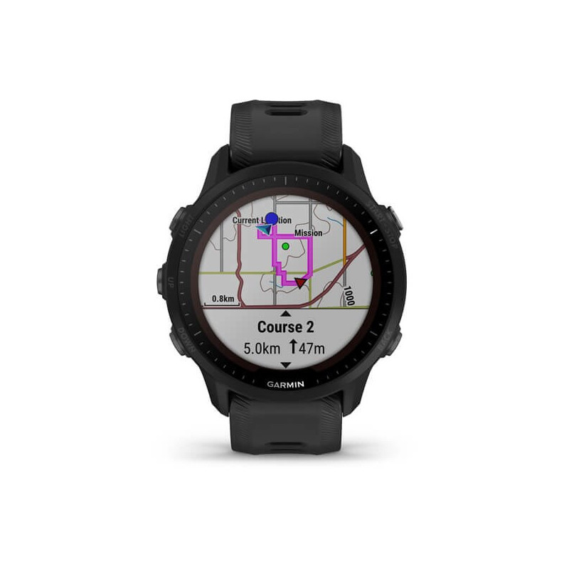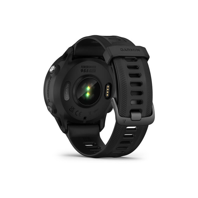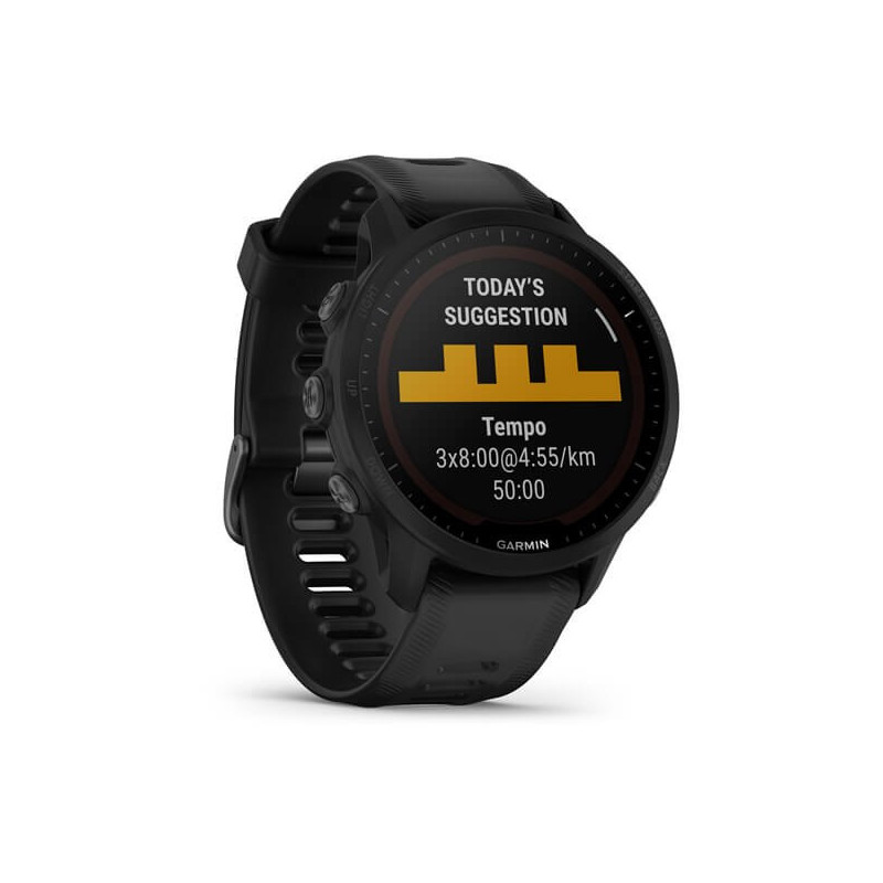 The Garmin Forerunner 955 has a 1.3" touchscreen, GPS, heart rate monitoring and activity tracking for multiple sports. It features smart notifications, music controls and up to 49 hours of battery life.