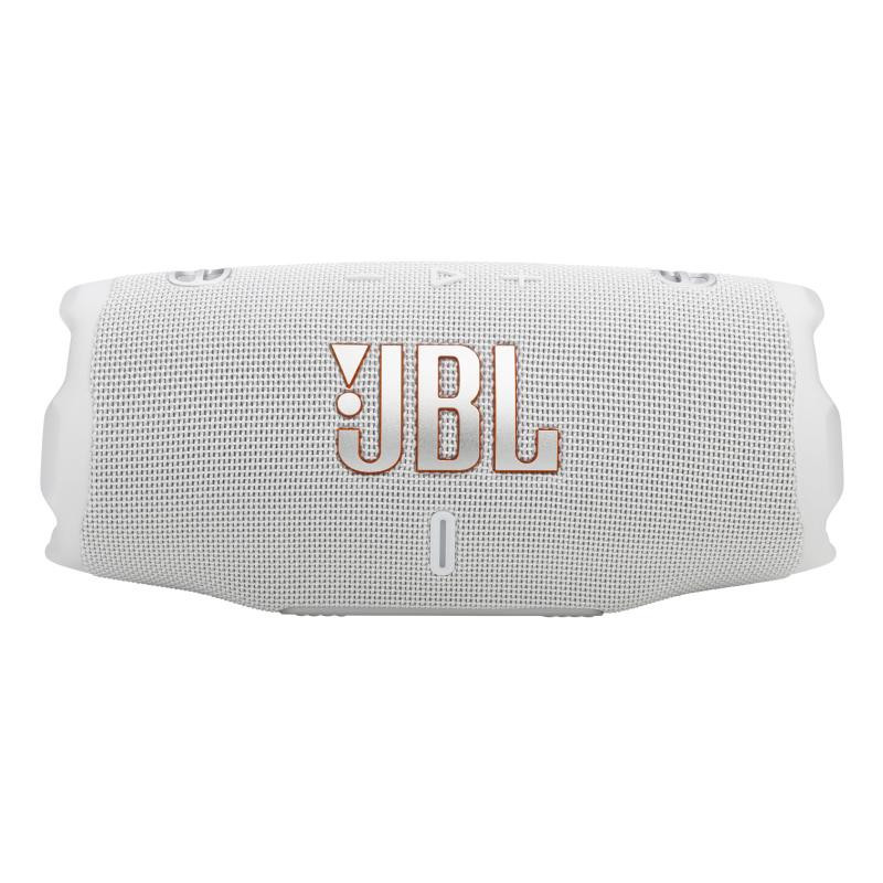 The JBL Charge 6 is a portable stereo speaker with water and dust resistance, designed for outdoor use. It offers up to 28 hours of playtime and has a built-in power bank for charging devices.