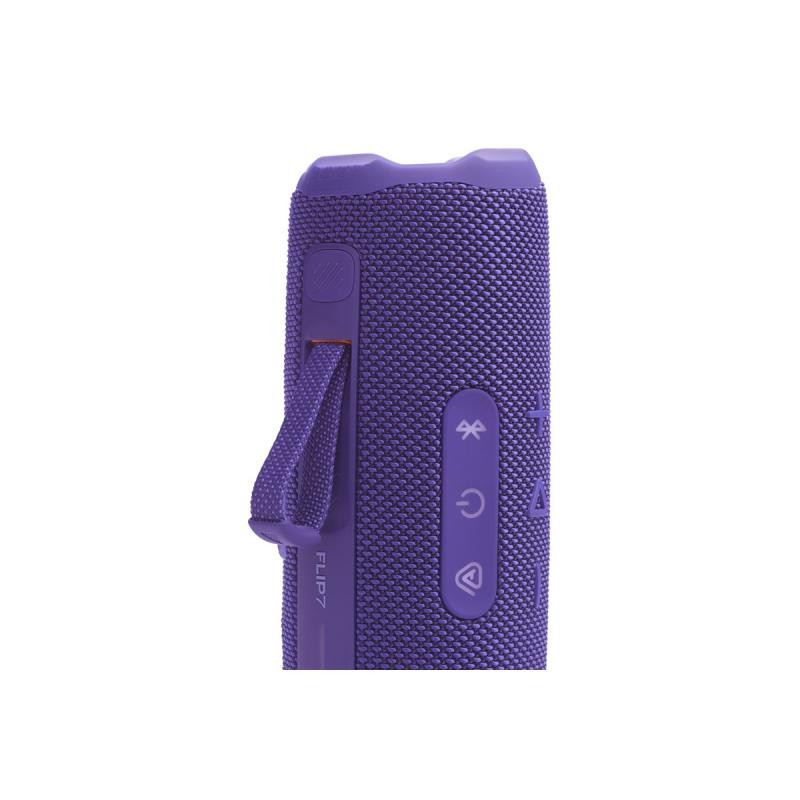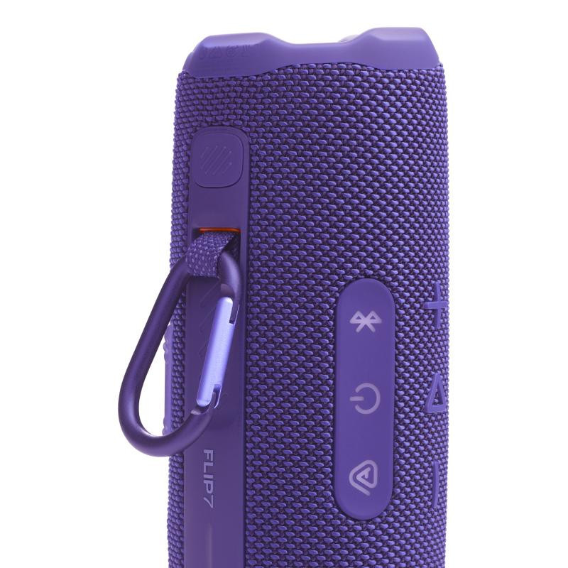 The JBL Portable Stereo Speaker Flip 7 offers Bluetooth connectivity for streaming music from a variety of devices and has a built-in microphone for hands-free calling. The rechargeable battery provides up to 16 hours of playtime, and the bass reflex port enhances sound quality.