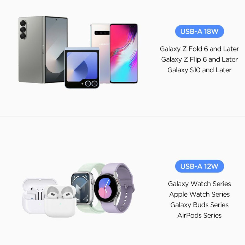 Two USB-A ports allow you to charge two devices simultaneously, providing super-fast charging â 18W for smartphones and tablets and 12W for smartwatches and headphones. Equipped with advanced battery protection, it offers technologies to prevent overcharging, overheating, and short circuiting, ensuring maximum safety for your devices.