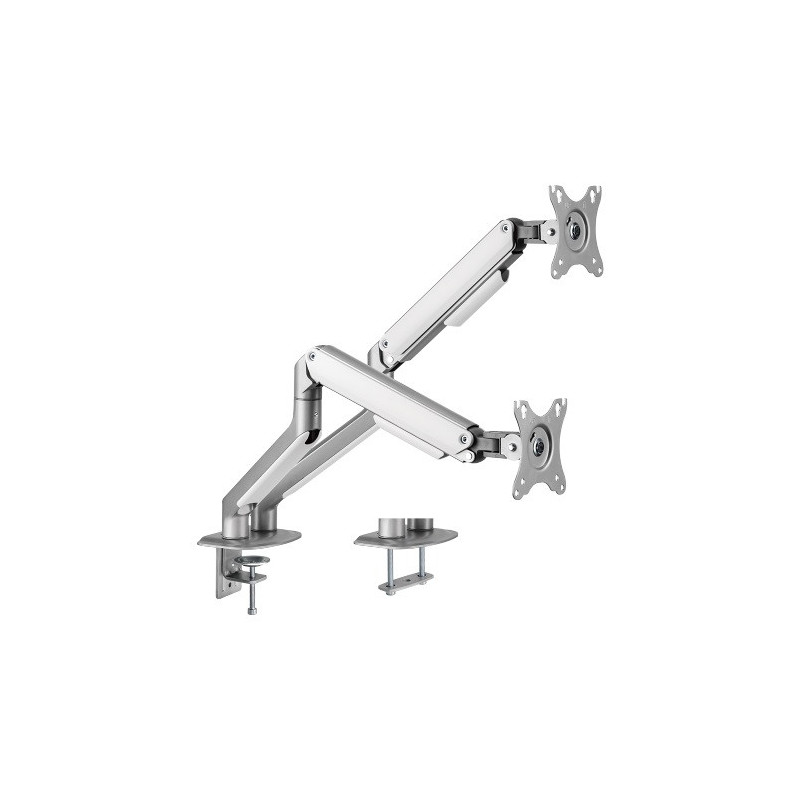 Dual 17'-32' monitor spring mount, silverThe steel and aluminum construction stand holds two 17-32 inch screens weighing up to 9 kg. Designed for tabletop mounting.Features: