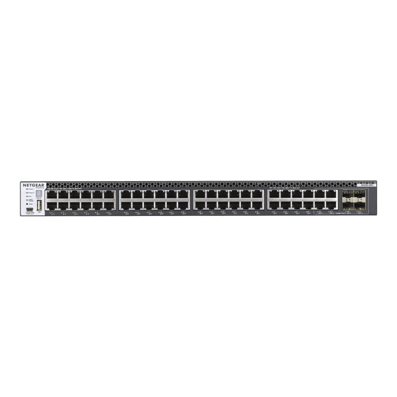 The Netgear ProSAFE M4300-48X switch has 48 ports with 10Gbps transmission speed and supports flexible stacking with 10G and 1G models. It provides comprehensive Layer 2 switching and Layer 3 routing functions without licensing requirements, ensuring ease of use and investment protection.