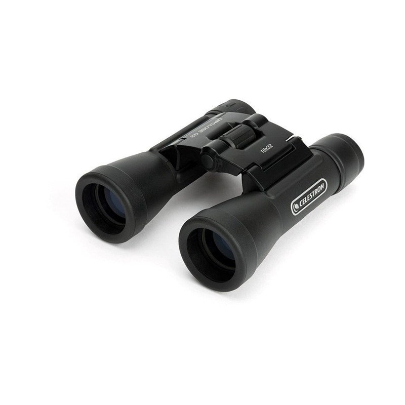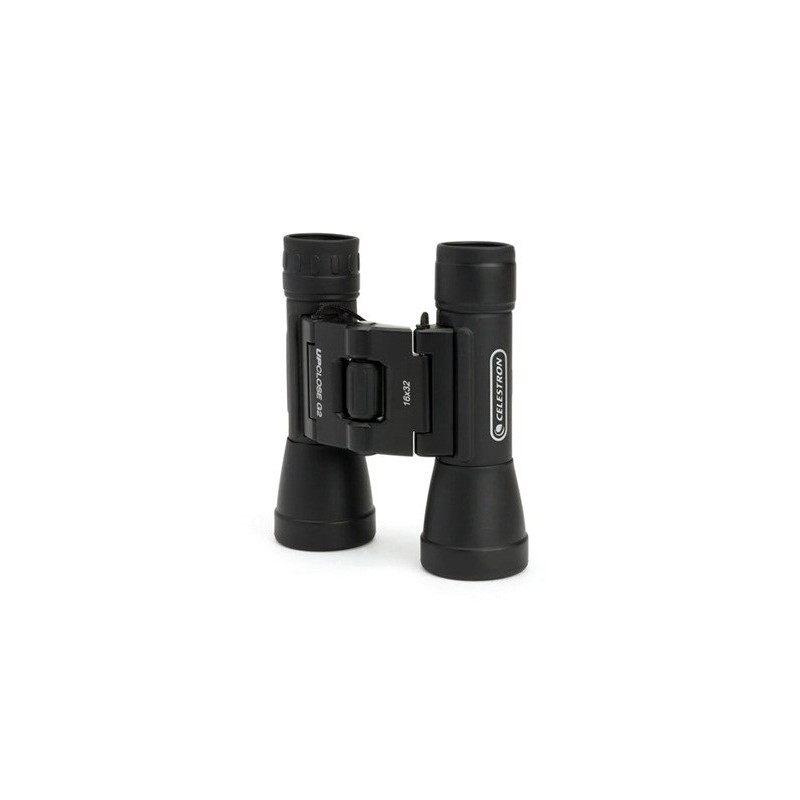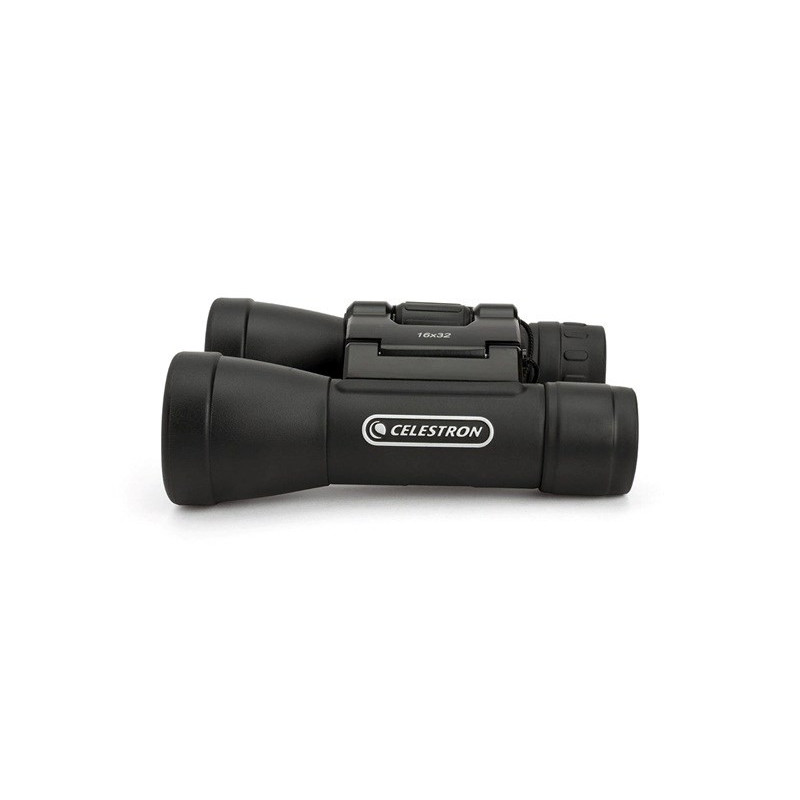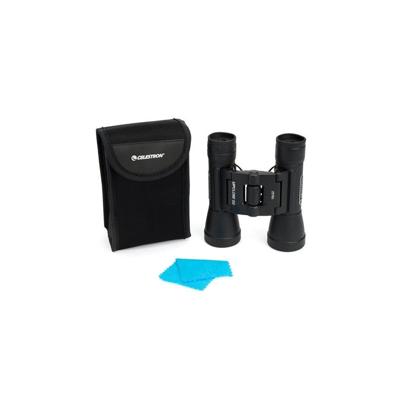 The Celestron UpClose G2 16x32 binoculars feature 16x magnification and a 32mm objective lens diameter for a clear view. The binoculars weigh 369g and come with a storage case, user manual, and cleaning cloth.