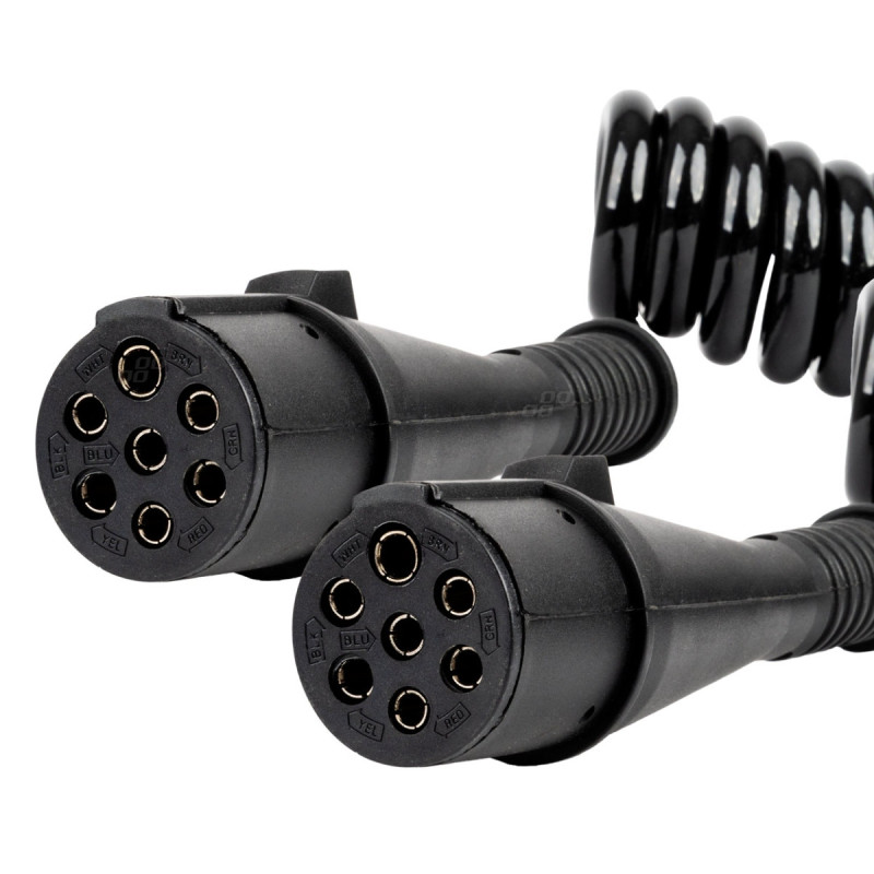 The 5-meter spiral cable allows for complete freedom of movement between the tractor and trailer, eliminating the risk of stress and abrasion. It's ideal for trucking, where a reliable and safe electrical connection is essential.