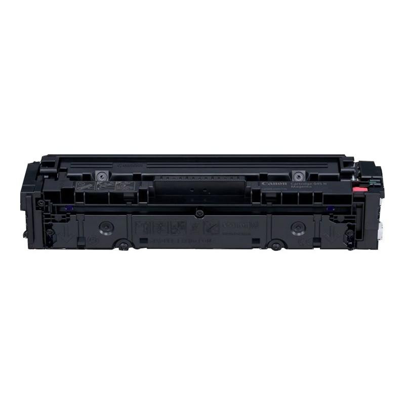 Canon toner cartridge CRG 045 H Magenta has a yield of 2,300 pages. It is an original toner unit with dimensions of 365 x 97 x 110 mm.