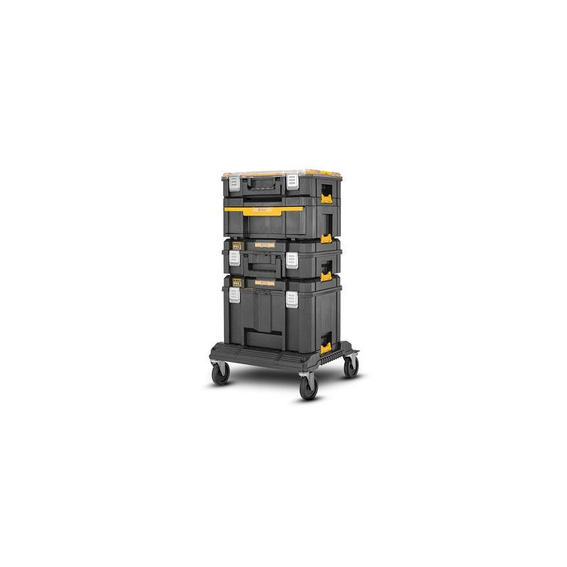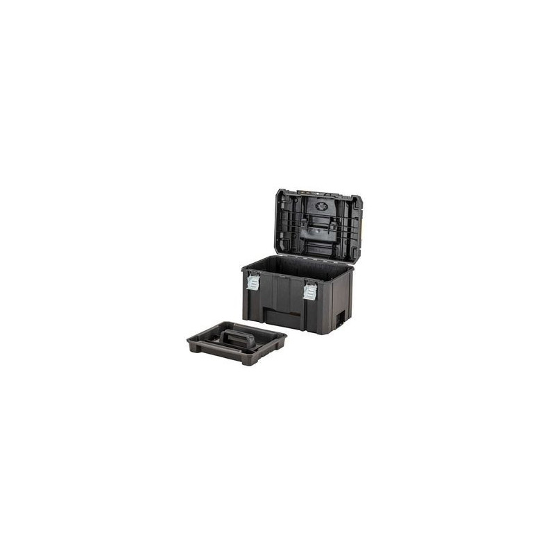 The Dewalt DWST83346 is a tool storage box made of black and yellow aluminum, ensuring durability and water resistance. The box has a locking mechanism that guarantees safe storage of tools and equipment.