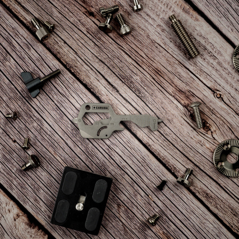 The Caruba Multitool Key combines a screwdriver, hex key, ruler and bottle opener in a compact design. It is useful for minor repairs, equipment adjustments and opening bottles during various activities.